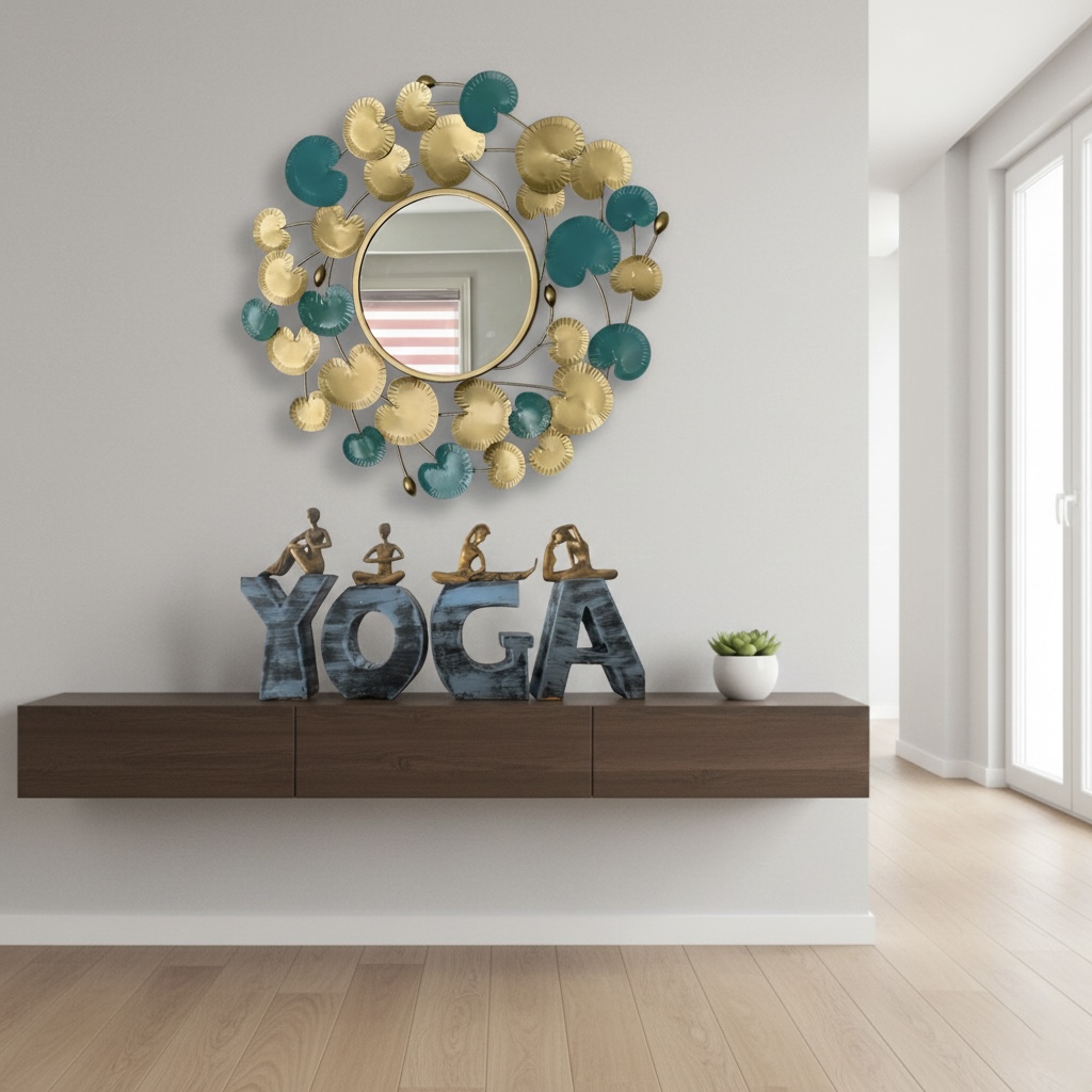 The blue and golden modern wall mirror is a stunning piece of home decor that adds a touch of elegance and sophistication to any room. The mirror’s frame is a masterful blend of modern style and classic luxury, featuring a delicate balance of blue and golden hues.